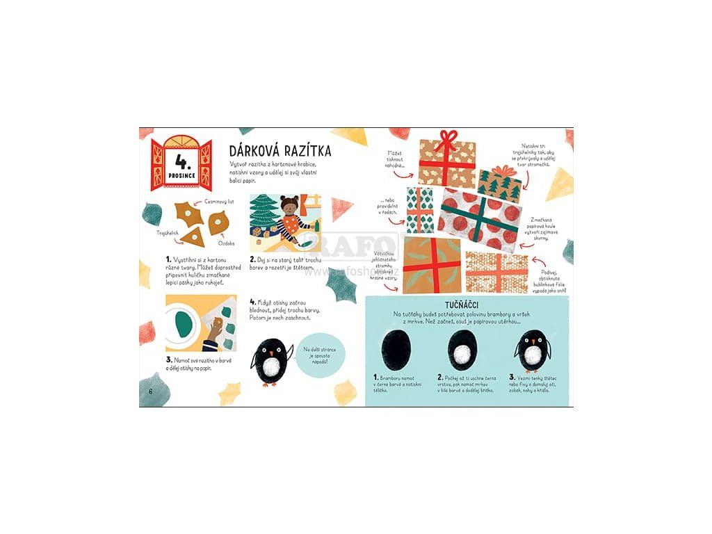 Adventní tvoření. Sešit obsahuje 24 stran plných zábavných vánočních aktivit a nápadů na tvoření od začátku prosince až do Vánoc. Rozměr 276 x 216 mmDoplňkové parametry