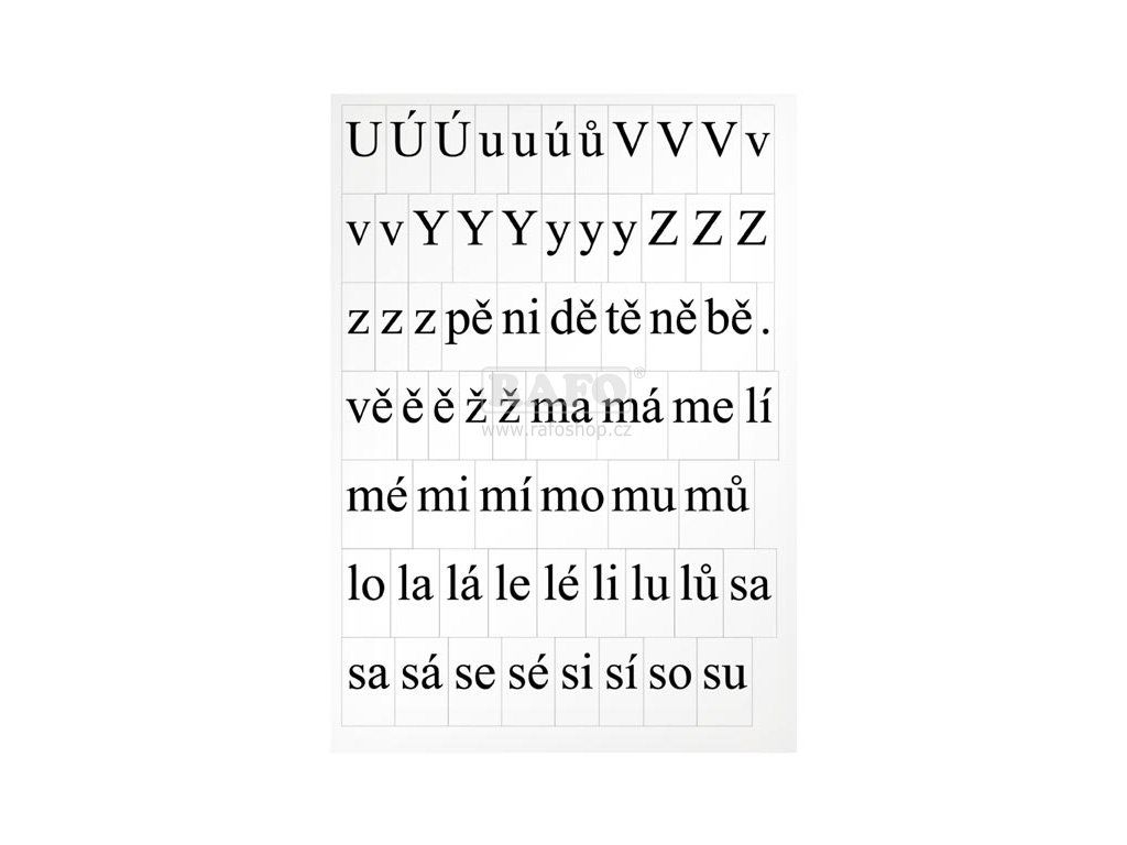 Sada 4 ks tisků ABECEDA - slouží k vystřižení jednotlivých písmenek a slabik, vhodné pro výuku v prvních ročnících základních škol. Školáčci si díky těmto kartičkám procvičí písmenka abecedy.Doplňkové parametry