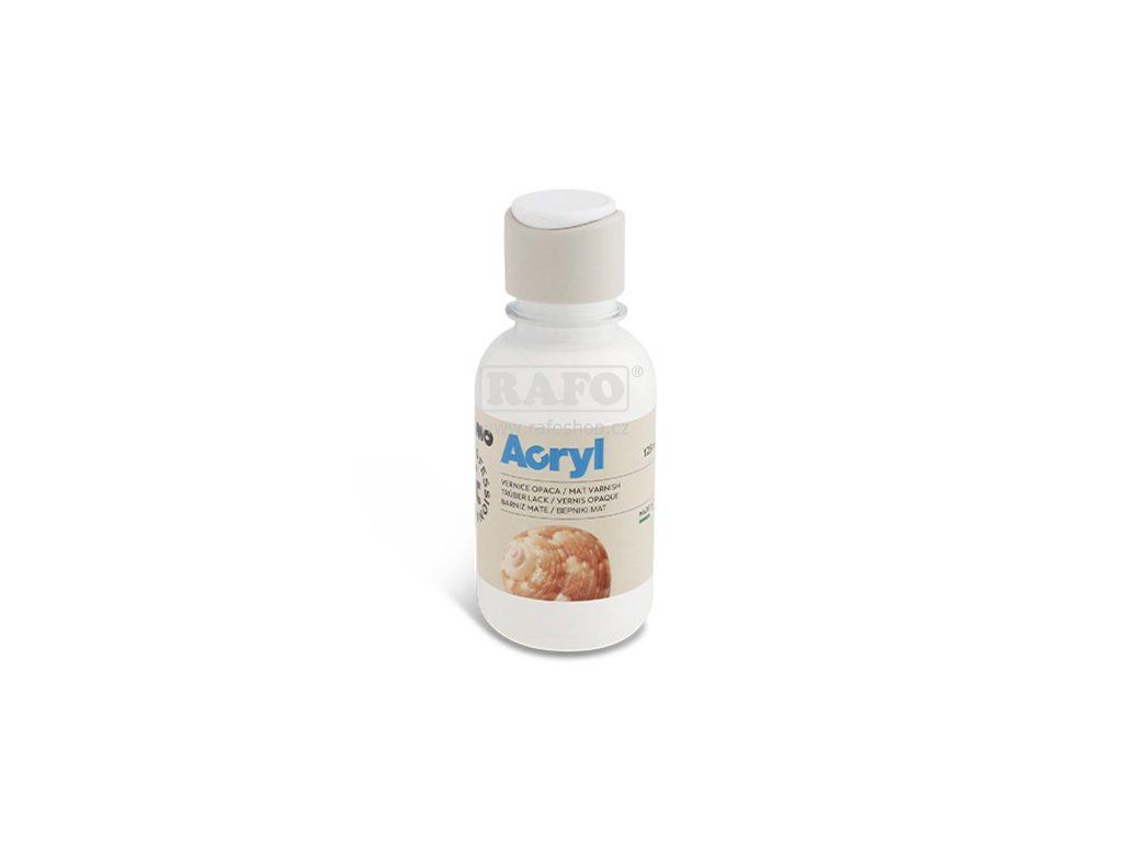 Vodou ředitelný velmi kvalitní lak pro matné povrchové úpravy. • 125 ml • Vhodný pro jakýkoliv povrch. • Používá se již na hotové výrobky – malby /malované např. akrylovými barvami/ k silnější fixaci, jako ochrana před prachem nebo jinými vlivy. Případně, že budete nanášet ve více vrstvách je nutno nechat tu předchozí min. 24 hodin zaschnout. Před použitím dobře promíchejte a umyjte si štětce vodou.Doplňkové parametry