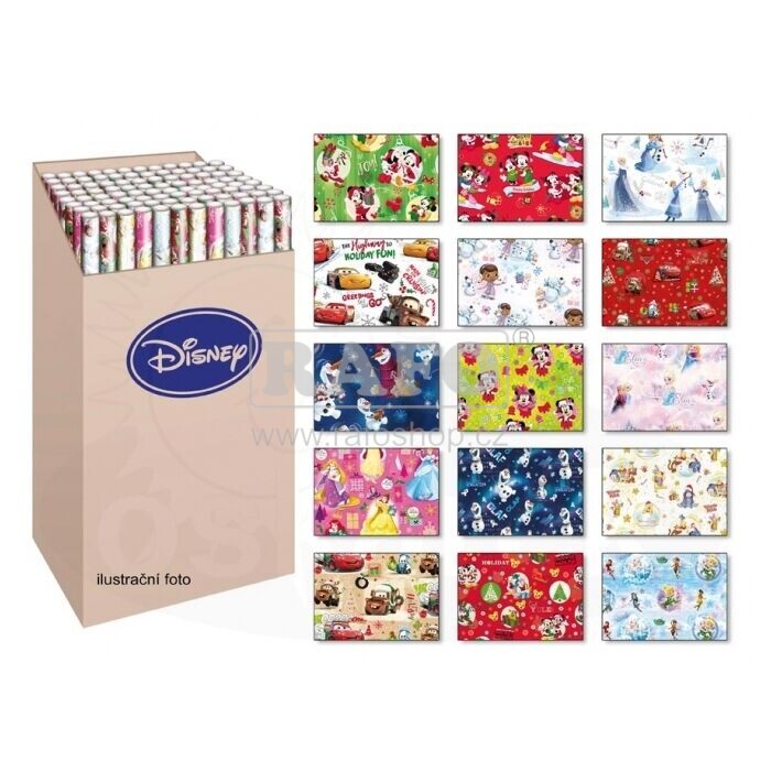 Vánoční balící papír s motivy Disney pohádek v rozměru 70 cm x 2 m. POZOR motiv si nelze vybrat, bude dodán dle aktuální skladové dostupnosti.