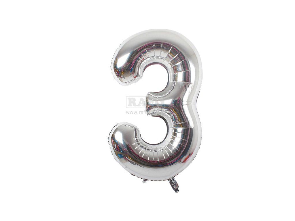 Balónek číslo 3, stříbrný, 40 cm