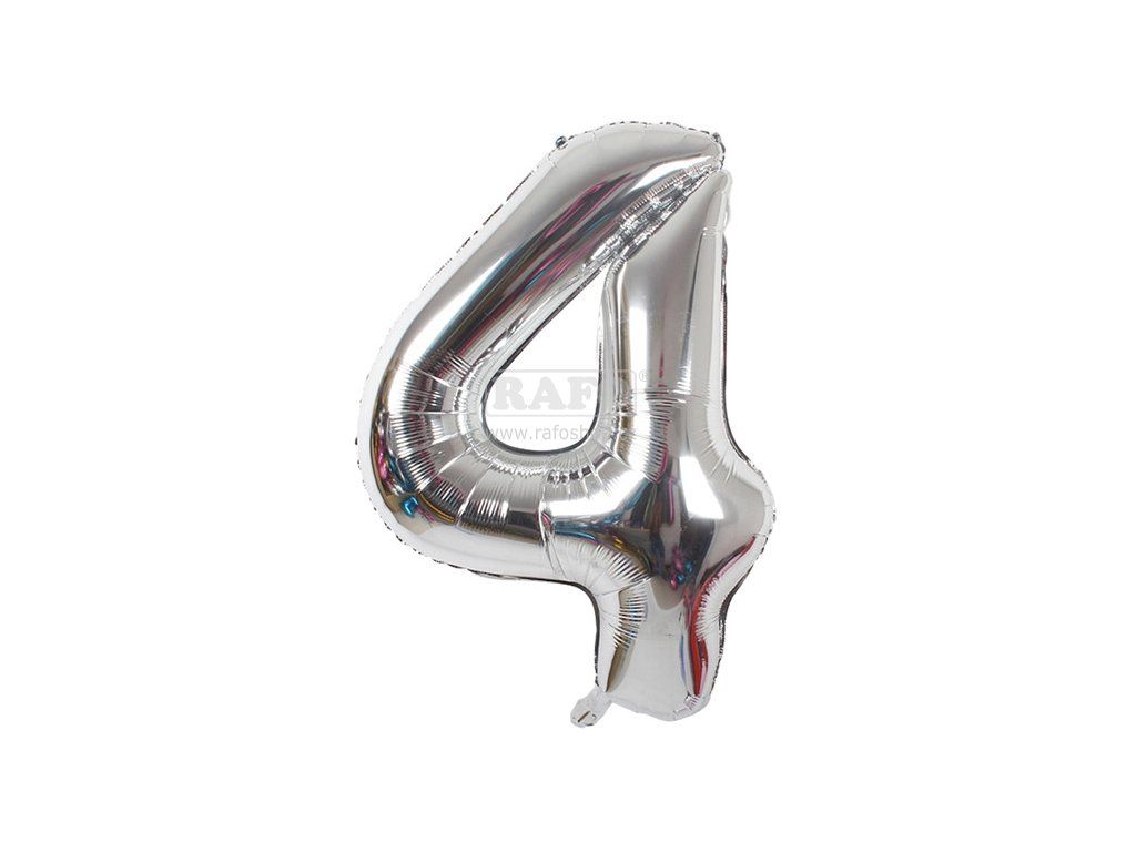 Balónek číslo 4, stříbrný, 40 cm