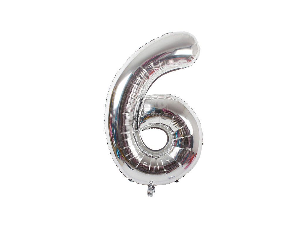 Balónek číslo 6, stříbrný, 40 cm