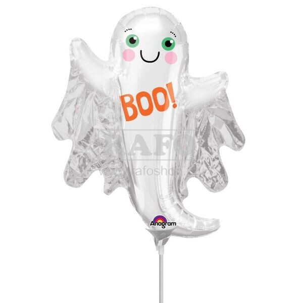 Fóliový balónek DUCH s nápisem Boo!, dodáváno v nafouklém stavu vzduchem, pevně uzavřené a vydrží i rok v nafouklém stavu. Dřevěná tyčka součástí balení. Velkost cca 28 cm