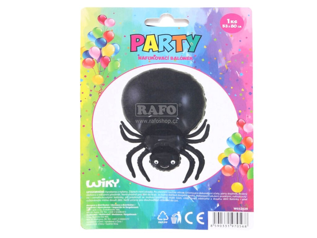 Fóliový balónek nafukovací ve tvaru černého pavouka. Velikost v nenafouknutém stavu: 53 x 80 cmDoplňkové parametry