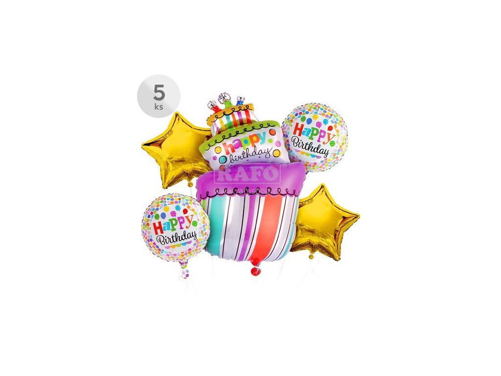 Foliové balónky jsou samotěsnící, takže není třeba vázat, znovu nafukovatelné, s otvory na zavěšení. Obsahuje 4 balónky rozměr 45 cm, balón dort 1 ks - 54 x 103 cm.Doplňkové parametry