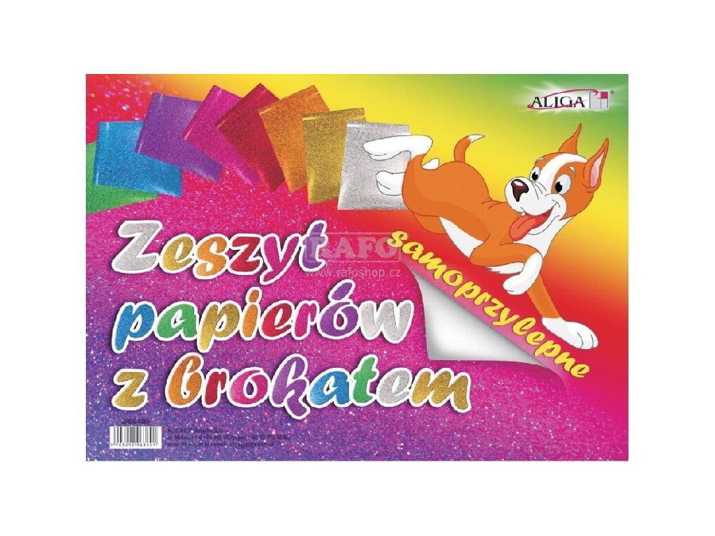 Sešit obsahuje 8 listů barevného samolepicího papíru 250g s brokátem. Formát B5 (176 x 250 mm)Doplňkové parametry
