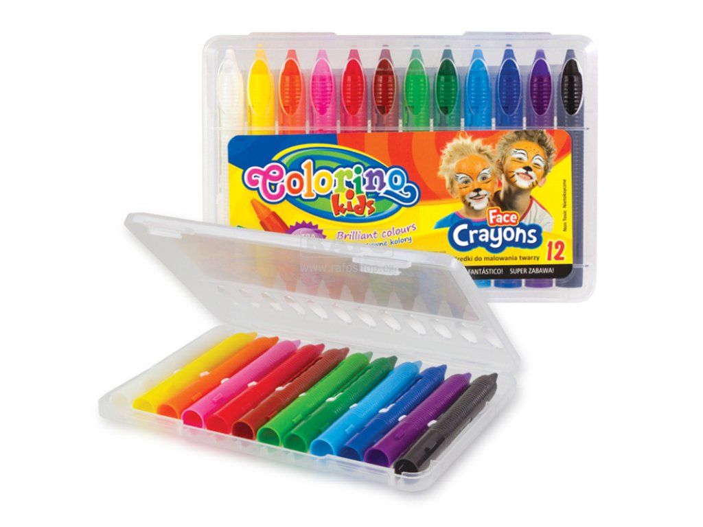 Barvičky určené pro malování na obličej a tělo. Malování je extra snadné a bez nepořádku - barva v praktické plastové násadce. Lehce se nanáší. Zdravotně nezávadné a bez zápachu. Snadno vodou omyvatelné. Balení 12 barev v plast.pouzdře.Doplňkové parametry