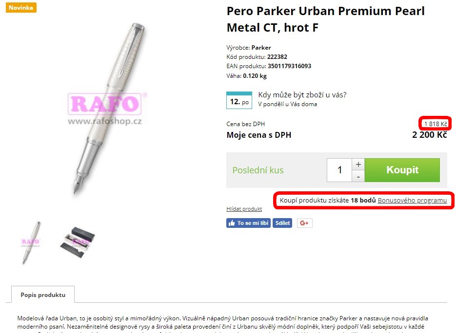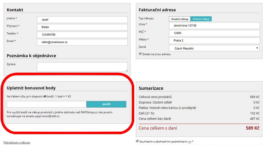 Body za každý nákup na www.rafoshop.cz. Tyto body pak můžete uplatnit při dalším nákupu na rafoshopu.cz. Podmínkou je registrace a přihlášení do Vašeho účtu na www.rafoshop.cz.