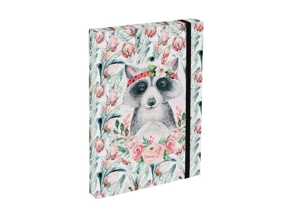 Růžové kytičky a medvídek mýval na školních deskách formátu A4, které pomáhají chránit a organizovat školní sešity. Rozměr: 23 x 32 x 3 cmDoplňkové parametry