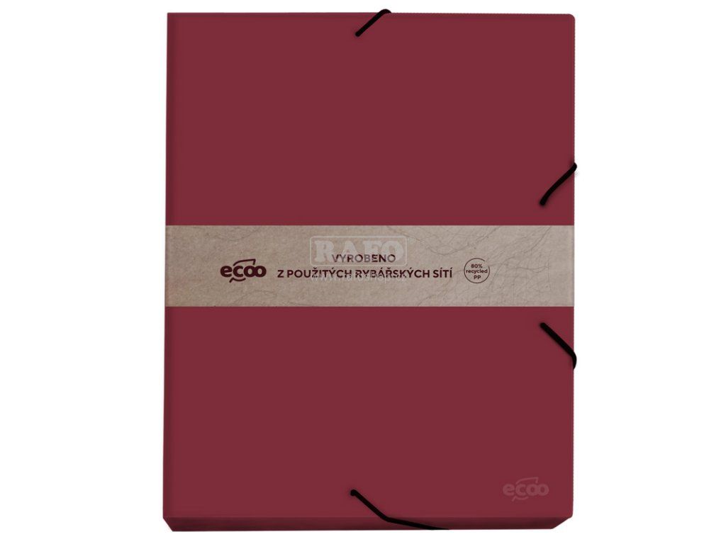 Tento box je vyroben ze silného a odolného z 80% recyklovaného polypropylénového materiálu tl.0,5 mm. Box je využitelný jak pro prezentaci, tak i k archivaci dokumentů. Předností tohoto boxu je ekologický materiál materiál a tloušťka, která zaručuje jeho pevnost a odolnost. Box je opatřen gumkou, která zajišťuje bezpečnost uloženého obsahu. Box má na přední straně umístěno logo "ecoo", kterým označuje novou řadu ekologických výrobků, vyrobených z použitých rybářských sítí. Rozměr boxu:230 x 320 x 35 mmDoplňkové parametry