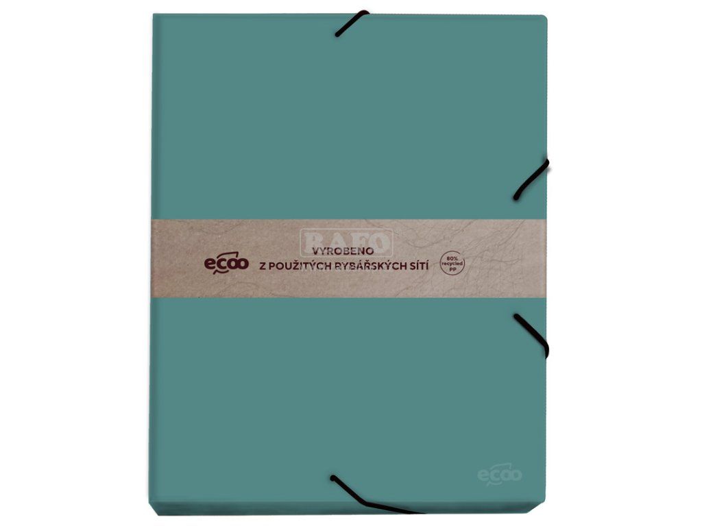 Tento box je vyroben ze silného a odolného z 80% recyklovaného polypropylénového materiálu tl.0,5 mm. Box je využitelný jak pro prezentaci, tak i k archivaci dokumentů. Předností tohoto boxu je ekologický materiál materiál a tloušťka, která zaručuje jeho pevnost a odolnost. Box je opatřen gumkou, která zajišťuje bezpečnost uloženého obsahu. Box má na přední straně umístěno logo "ecoo", kterým označuje novou řadu ekologických výrobků, vyrobených z použitých rybářských sítí. Rozměr boxu:230 x 320 x 35 mmDoplňkové parametry
