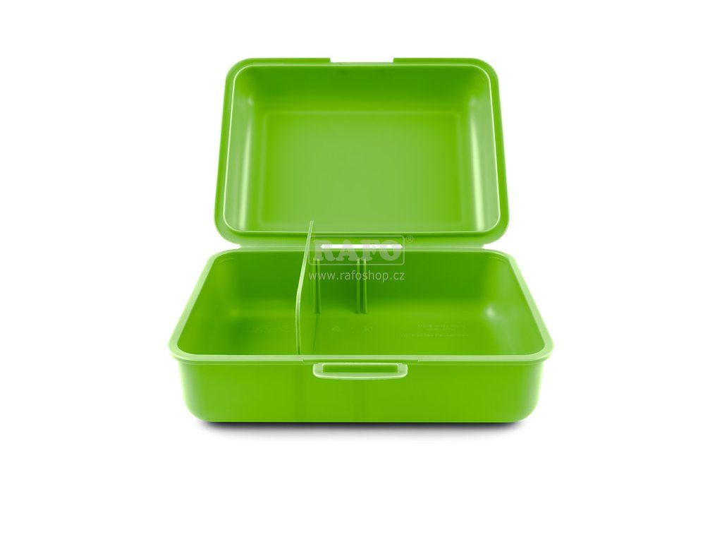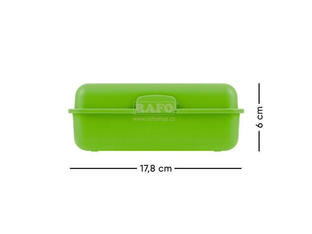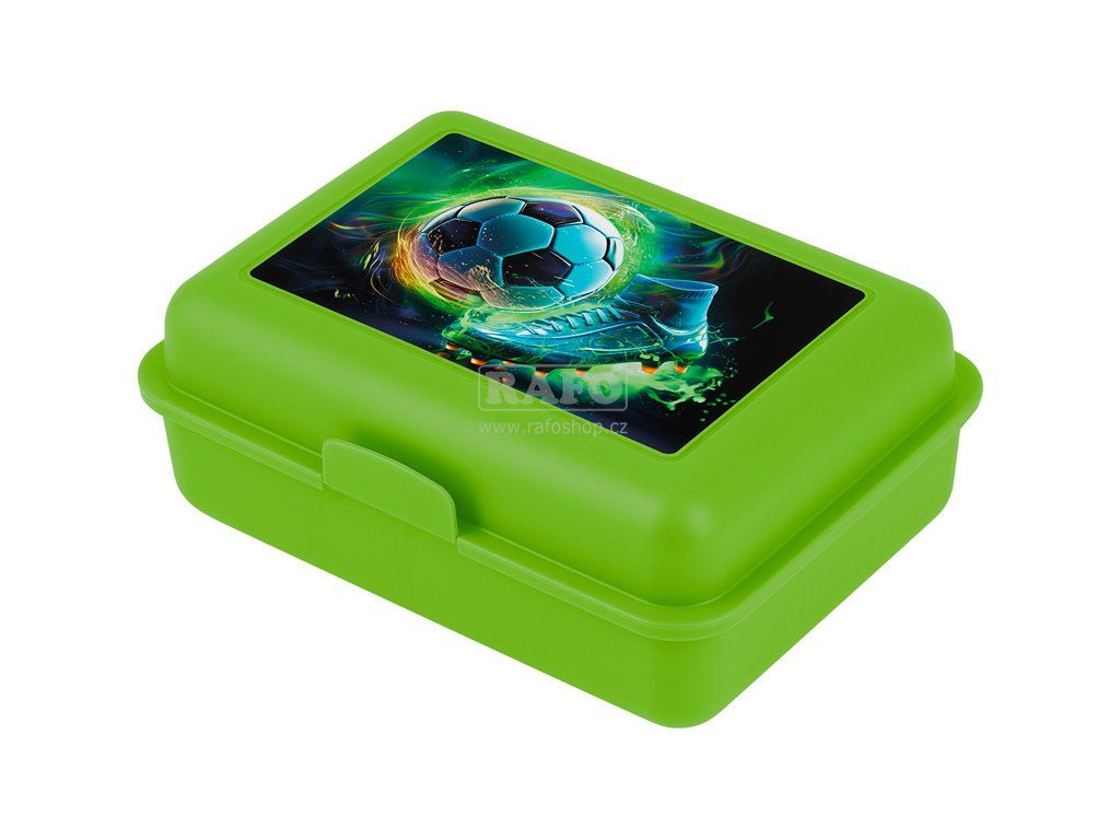 Praktický box na svačinu s motivem fotbalového míče. Zahrnuje polohovatelnou přepážku pro oddělení potravin. • Plastový box na svačinu v bílé barvě. • Box má uzavírání na jeden zámek a dělicí přepážku. • Nedoporučujeme mýt v myčce • Rozměry: 17,8 x 12,2 x 6 cmDoplňkové parametry