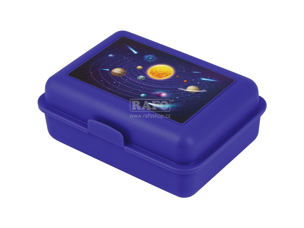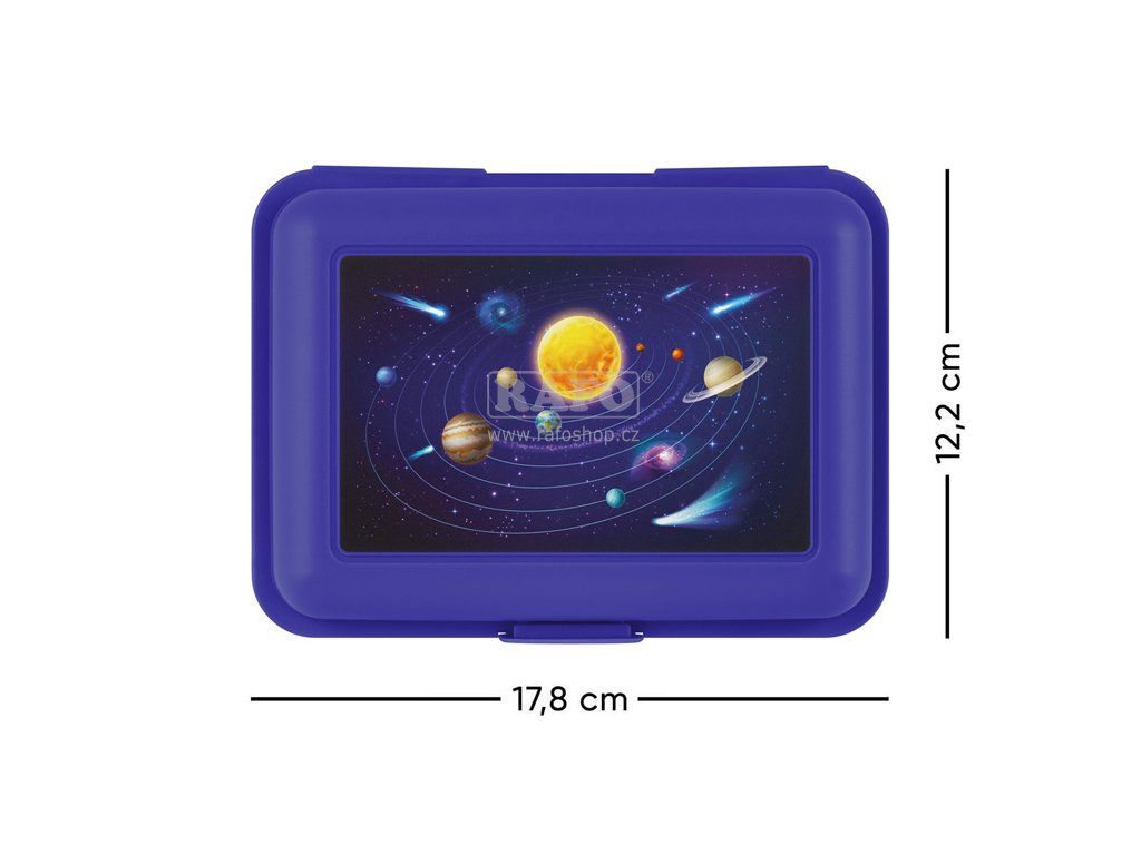 S tmavě modrou krabičkou na svačinu s motivem vesmíru a planet bude každá přestávka zábavnější. • Box má uzavírání na jeden zámek a dělicí přepážku. • Nedoporučujeme mýt v myčce • Rozměr: 17,8 x 12,2 x 6 cmDoplňkové parametry