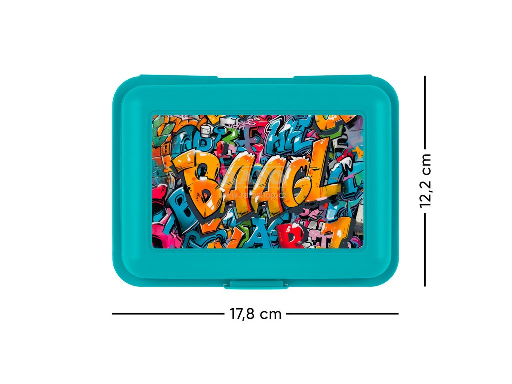 Svačinový box se street-artovým motivem a praktickou dělicí přepážkou pro snadnou přípravu pestré a vyvážené stravy – ideální třeba na odpoledne ve skateparku. • Plastový box na svačinu v bílé barvě. • Box má uzavírání na jeden zámek a dělicí přepážku. • Nedoporučujeme mýt v myčce • Rozměry: 17,8 x 12,2 x 6 cmDoplňkové parametry