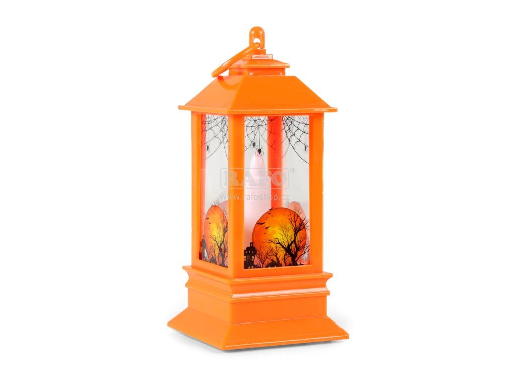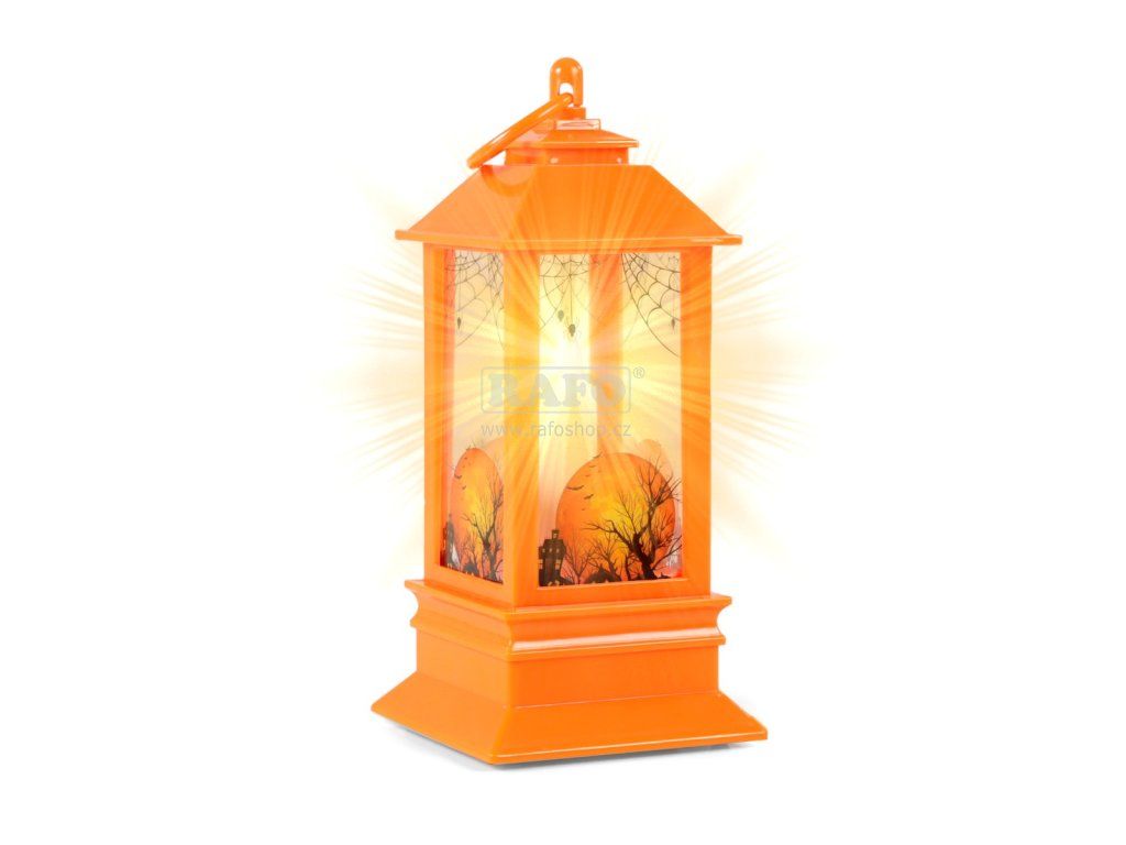 Plastová lampa (lucerna). Po zapnutí světélko bliká a ozývá se čarodějnický děsivý smích. Vhodné na Halloween party nebo pálení čarodějnic nebo jiný karneval. Vyžaduje 3 ks baterií AAA, které nejsou součástí. Výška cca 20 cm.Doplňkové parametry