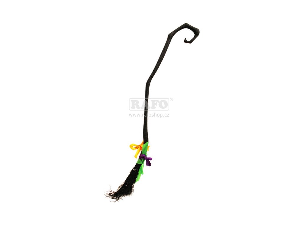 Plastové skladací koště v černé barvě s barevnými mašlemi. Délka cca 120 cmDoplňkové parametry