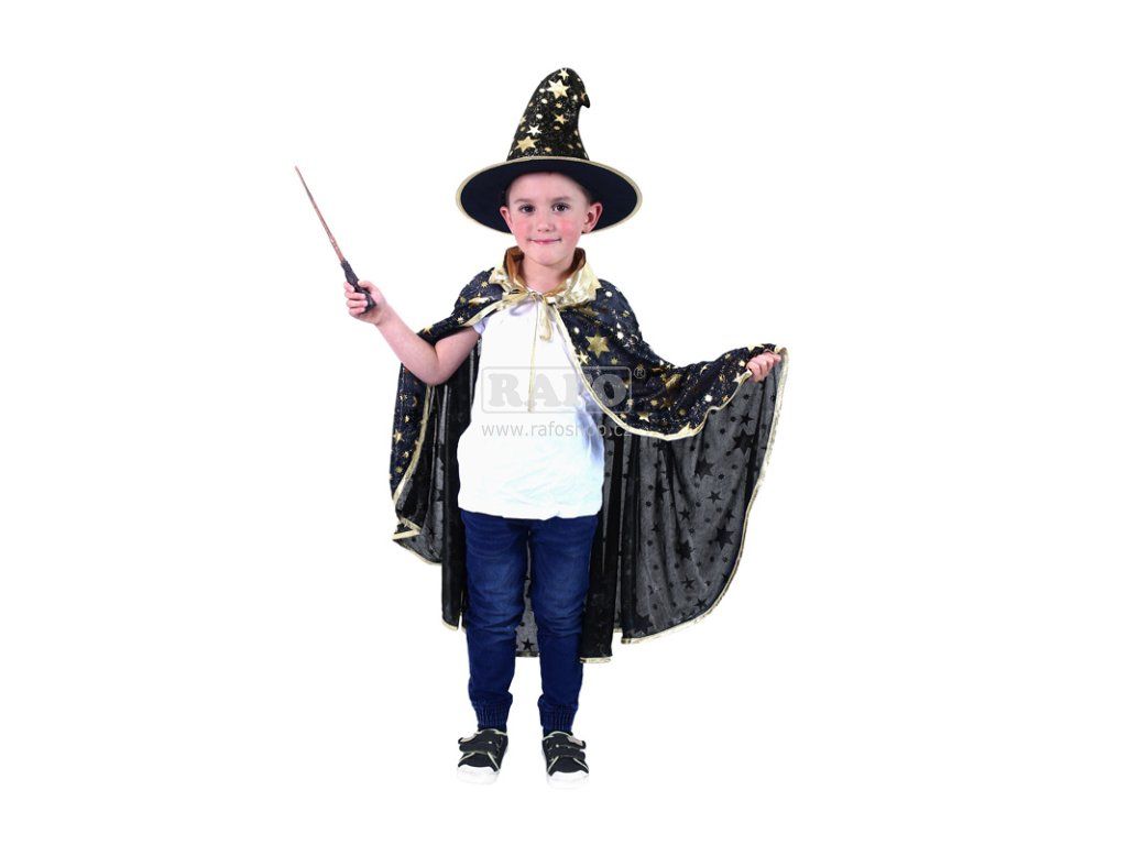 Čarodějnický plášť + klobouk, černý s hvězdami