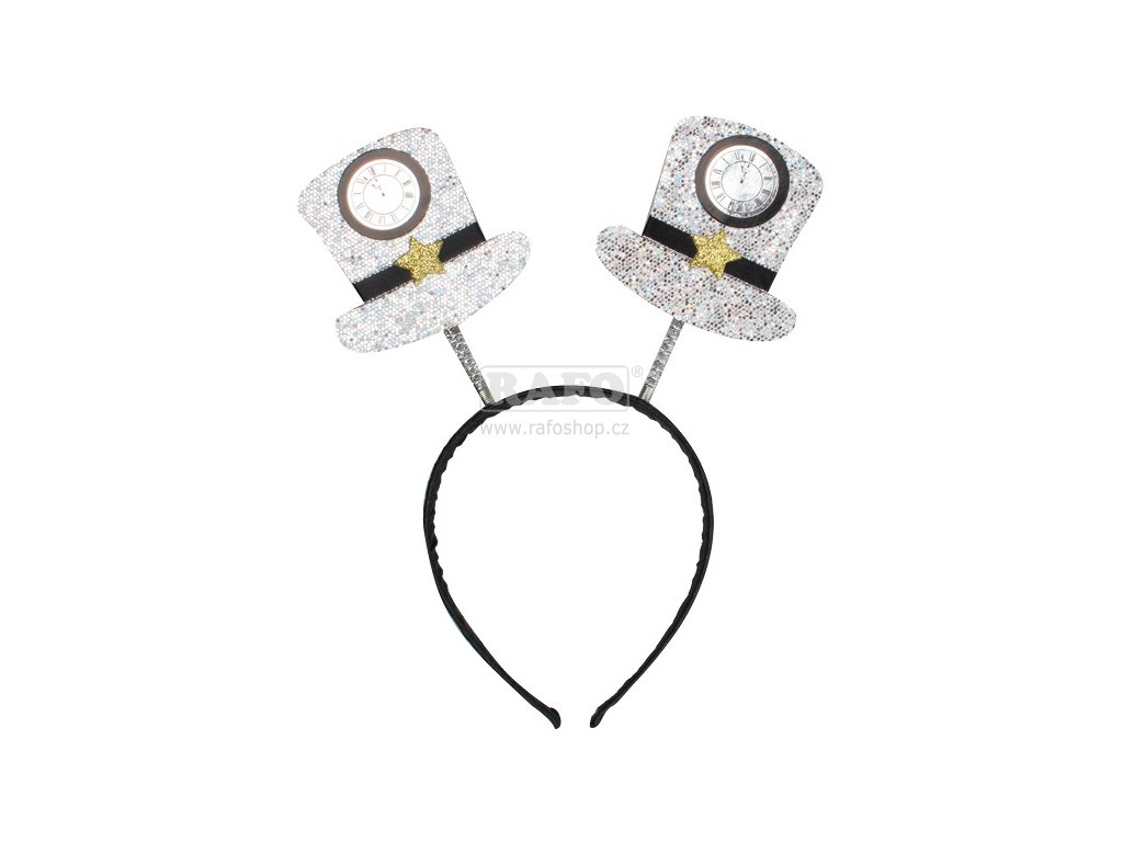 Silvestrovská čelenka kloboučky s hodinami.Doplňkové parametry