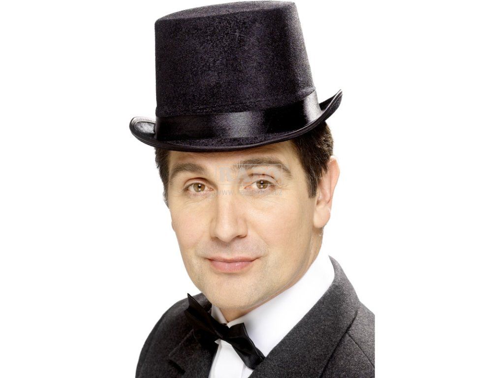 Plstěný cylindr, potažený látkou sametového vzhledu s černou stužkou. Obvod hlavy: 59 cmDoplňkové parametry