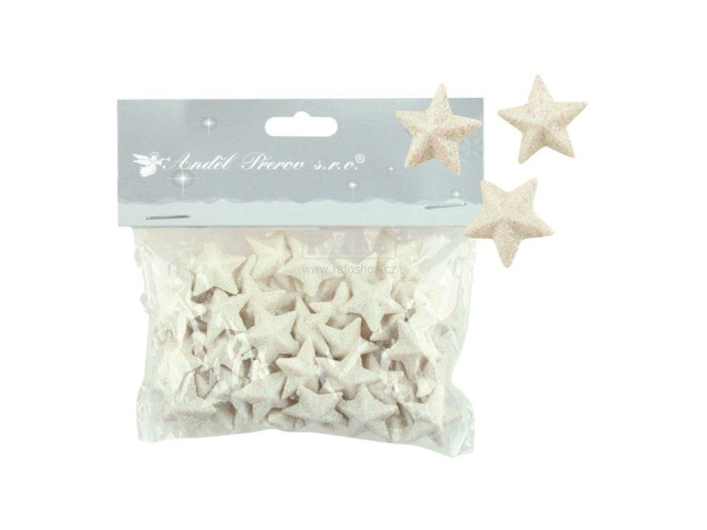 Dekorace vánoční - hvězdičky s glitry 50 ks bílé, 2 cmDoplňkové parametry