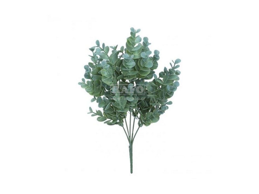 Umělá větvička s lístky eukalyptu. Větvička je na pevném plastovém stonku. Vhodné na vyrábění a dekorování.Doplňkové parametry