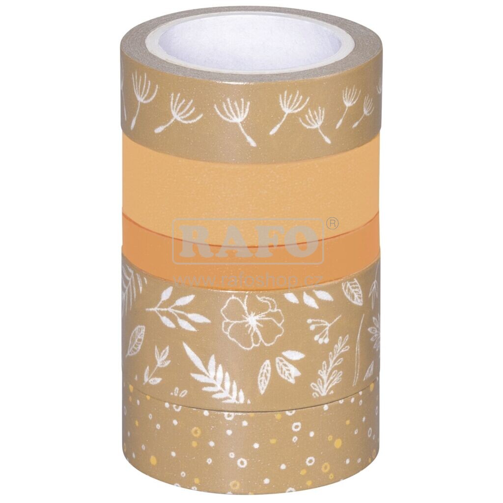 Dekorativní lepící páska natur lístky, oranžová, 5 ks