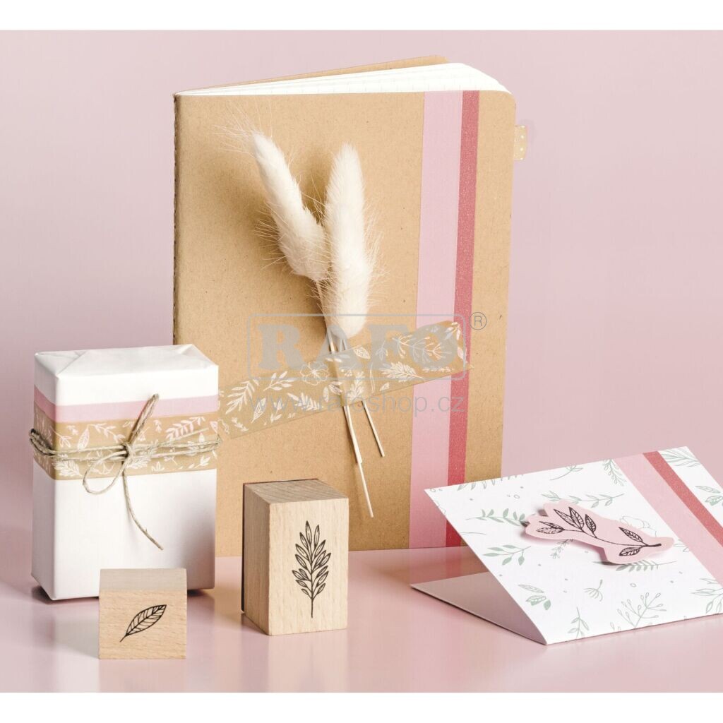 - Dekorativní lepící páska natur lístky, růžová, 5...