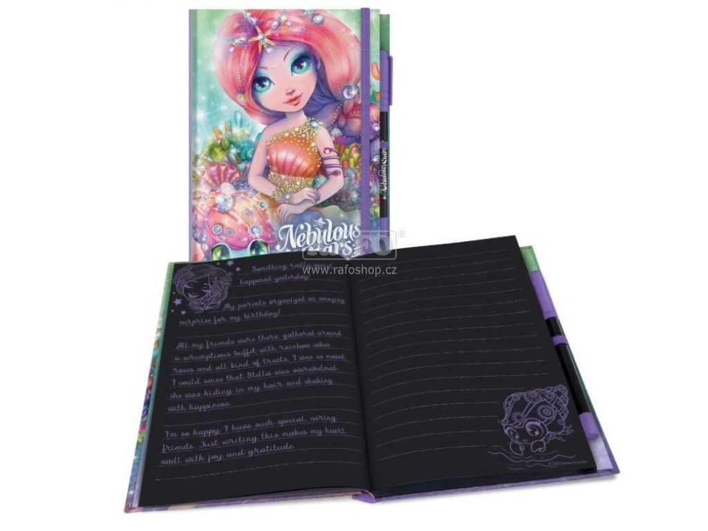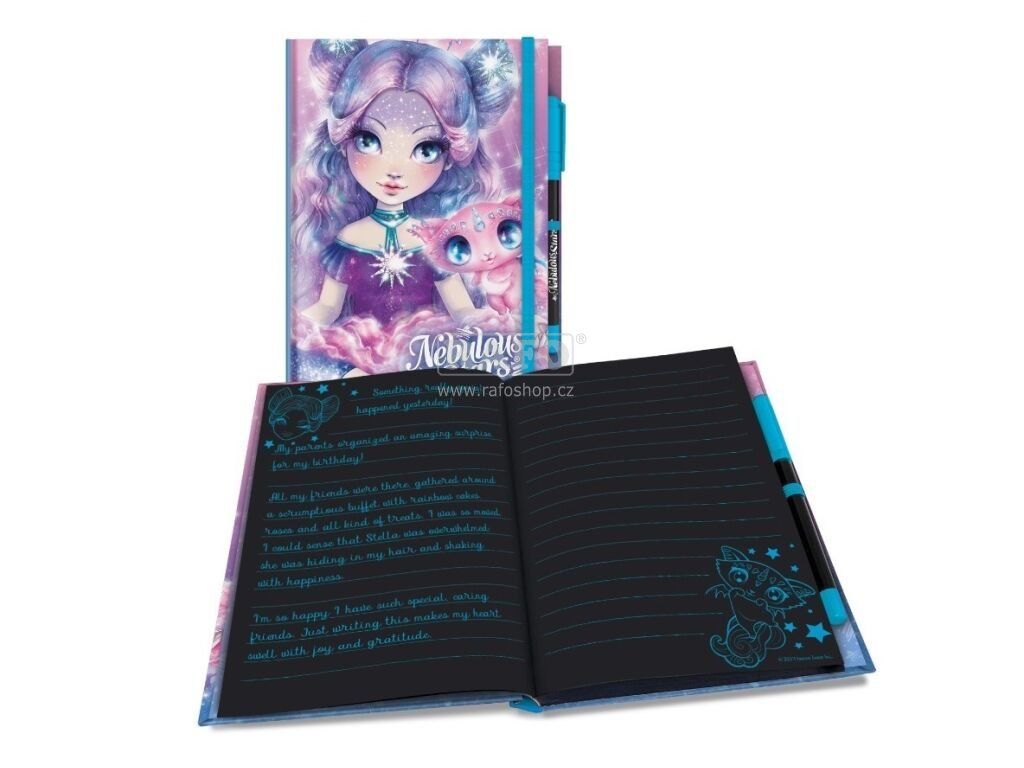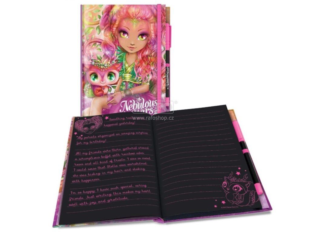 Deníček (zápisník) linkovaný s černými stránkami. Rozměry 20,1 x 15,2 cm, 112 černých stránek s barevnými linkami. Balení obsahuje deníček a gelové pero. 3 varianty - zelená, fialová, modrá, dodáváno dle skladové dostupnostiDoplňkové parametry