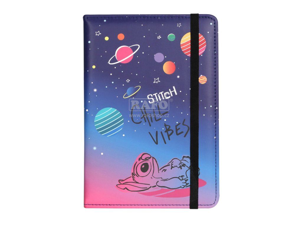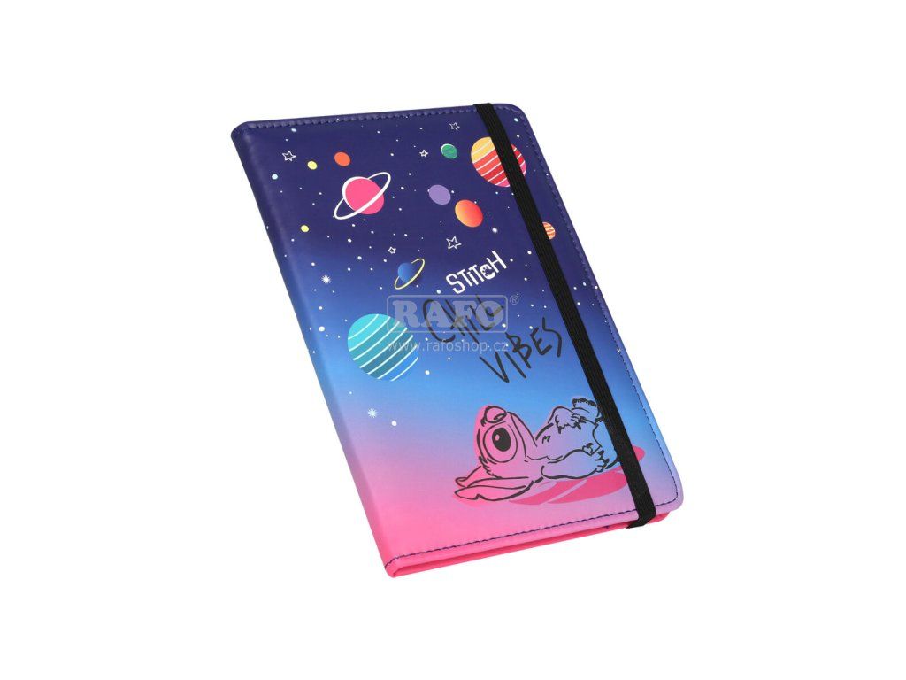 Designový notes A5 Stitch black, 80 listů, motiv 3 planety