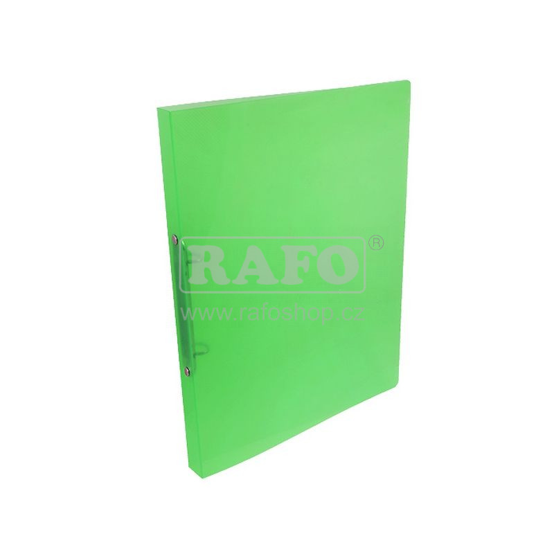 PP pořadač formátu A4 s 2 kroužkovou mechanikou s šíří hřbetu 2 cm. Vyrábí se z průhledného mléčného polypropylenu.