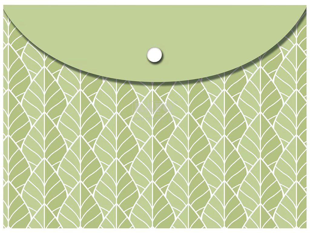 Plastové pouzdro na dokumenty A6 s motivem zelených listů, rozměr 17 x 12,5 cm.