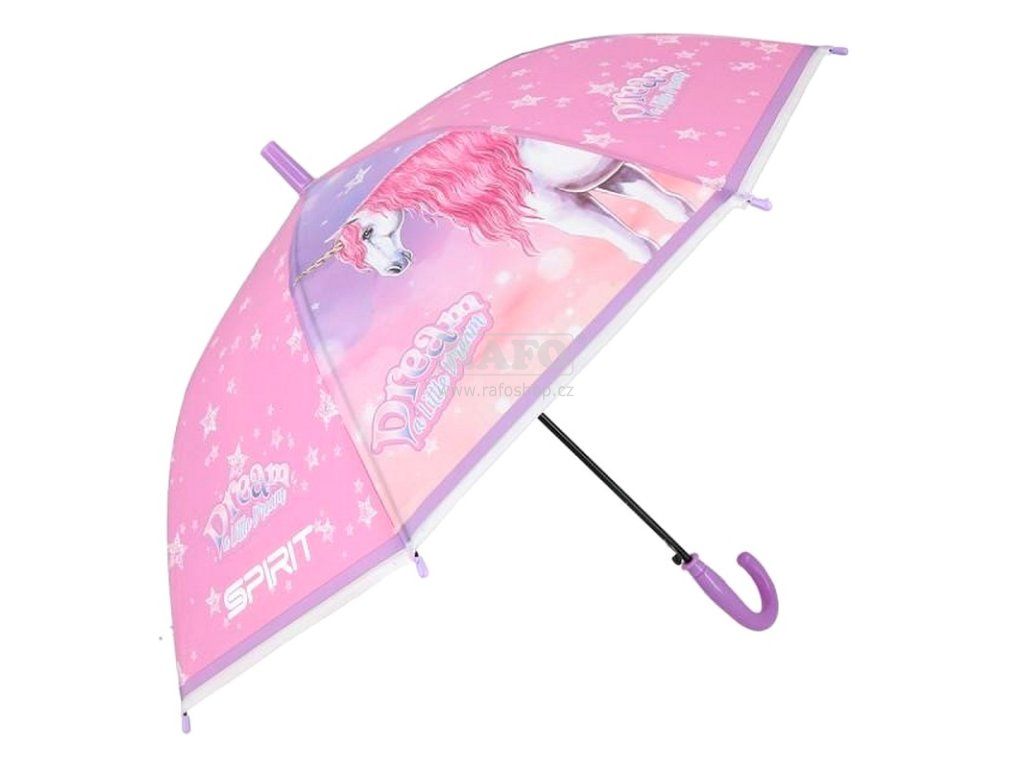 Velmi pevný deštník s automatickým otevíracím mechanismem pro děti. Materiál POE s potiskem, plastová rukojeť v barvě deštníku, 8x pevný sklolaminátový drát, průměr otevřeného deštníku je 77 cm.Doplňkové parametry