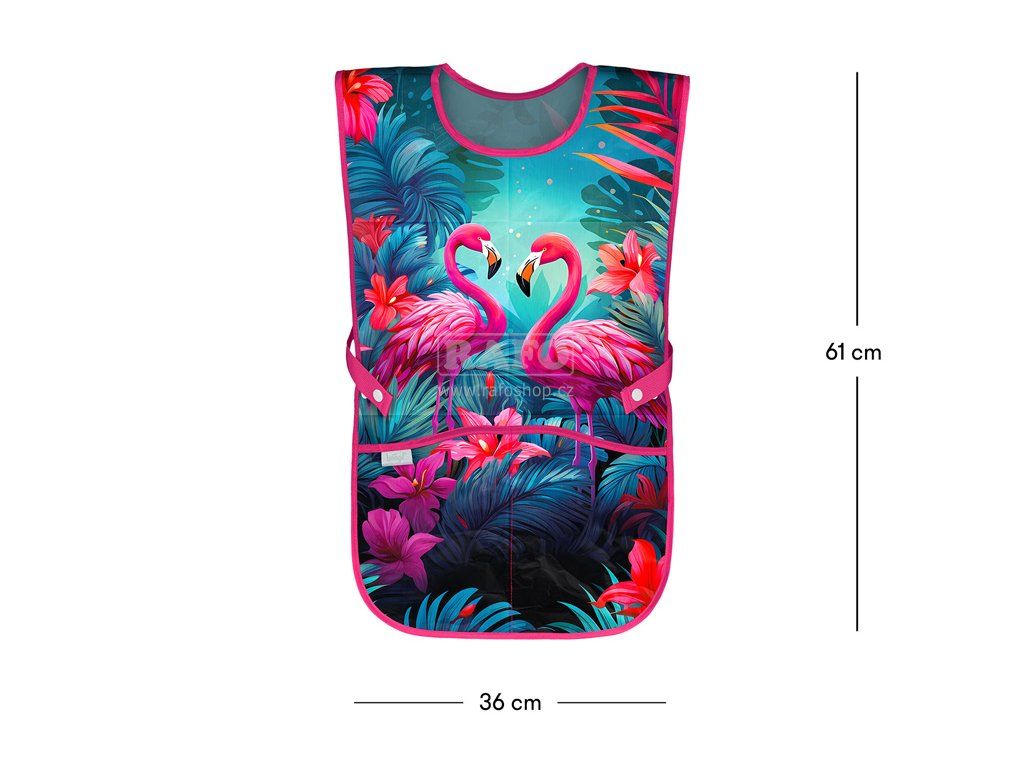 Chraňte oblečení svého malého školáka praktickou zástěrou na výtvarnou výchovu. Zástěra s motivem plameňáků má nastavitelný popruh, díky němuž ji snadno přizpůsobíte aktuální výšce dítěte, a je vyrobena z kvalitního omyvatelného materiálu. • Dětská zástěra na výtvarnou výchovu, pracovní činnosti a další kroužky. • V dolní části zástěry jsou dvě kapsy. • Vyrobeno z omyvatelného materiálu. Velikost: 61 x 36 cm • 100% PolyesterDoplňkové parametry