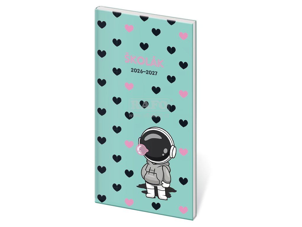 Školní deníček - diář s rozvrhem hodin a možností zapisování úkolů a poznámek na školní rok 2026/2027 s českým kalendáriem.