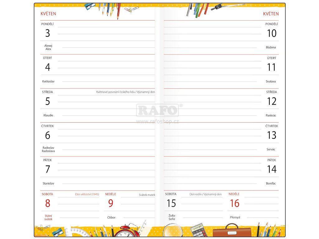 Školní deníček - diář s rozvrhem hodin a možností zapisování úkolů a poznámek na školní rok 2026/2027 s českým kalendáriem.