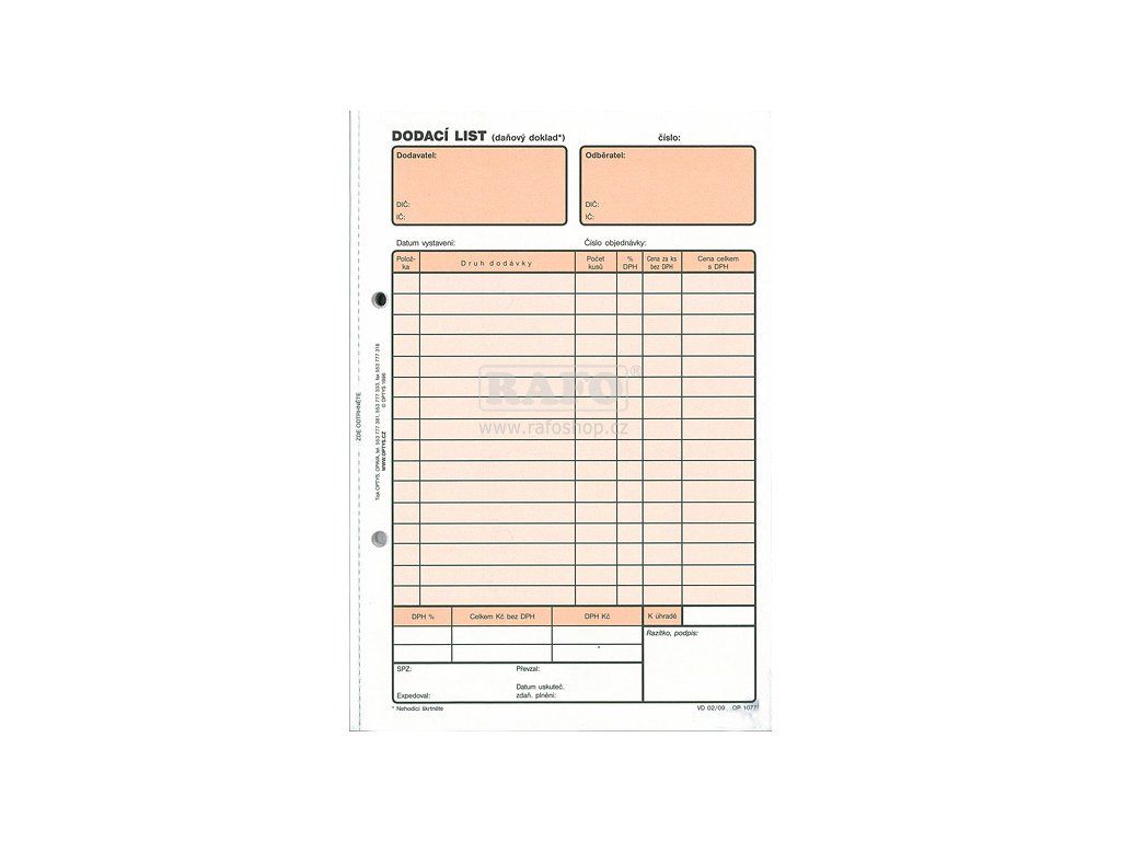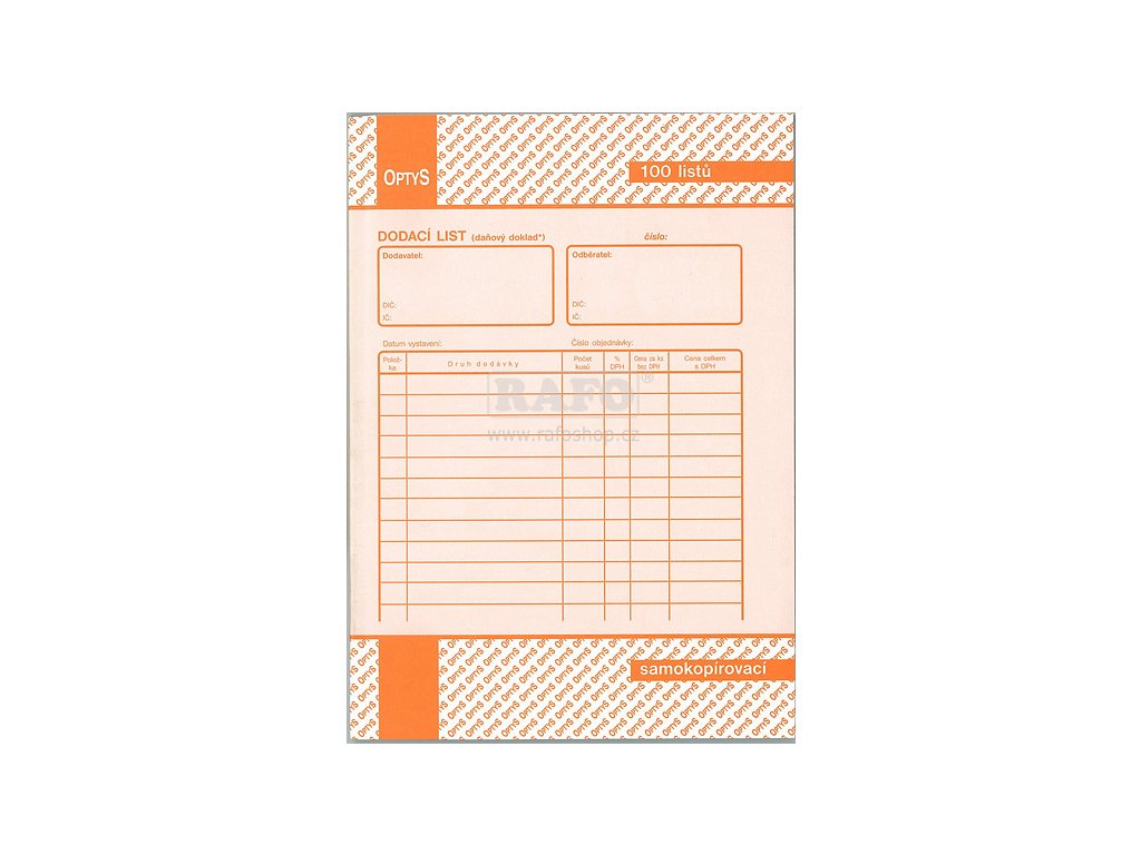 Dodací listy Optys 1077 A5, copy, 100 listů