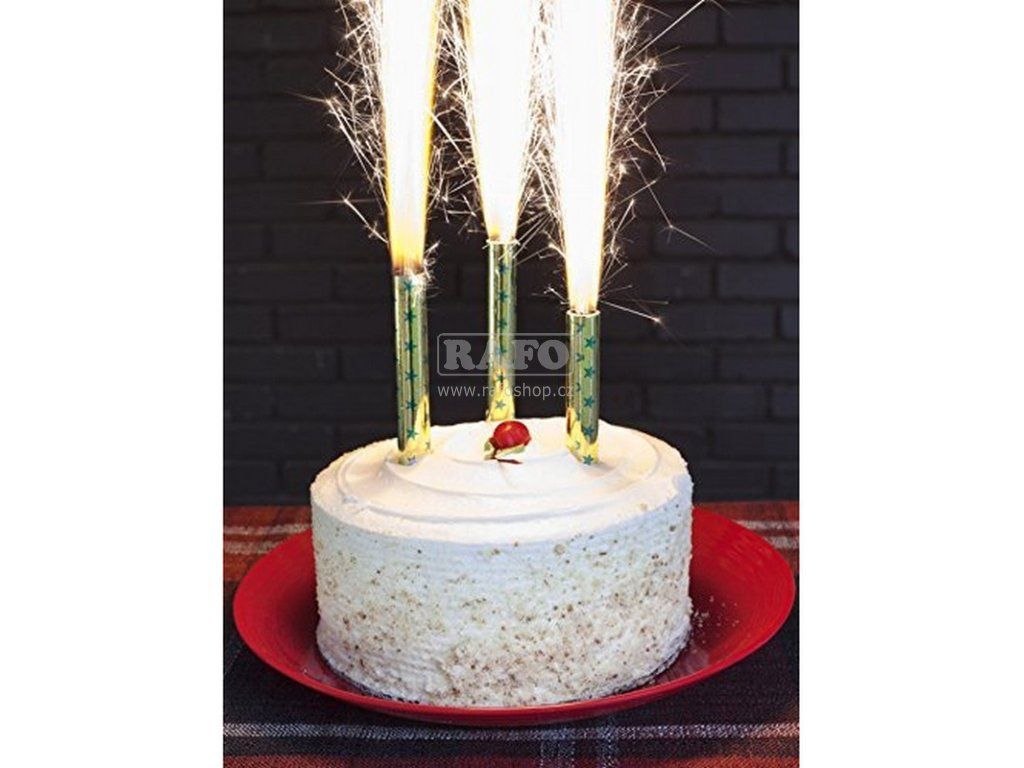 Dortová pokojová fontána, která po zapálení vykouzlí malý domácí ohňostroj. Stačí ji zapíchnout špičkou a horní okraj zapálit. Fontána vytvoří efekt zářících a chrlících jisker a vytvoří tak jedinečnou atmosféru. Je vhodná na každou párty a atraktivním doplňkem Vaší oslavy. Hoří cca 45 sec. Rozměry: celková výška včetně bodce je 15 cm. Tento produkt najde uplatnění při různých oslavách, rautech, zahradních a grilovacích párty.Doplňkové parametry