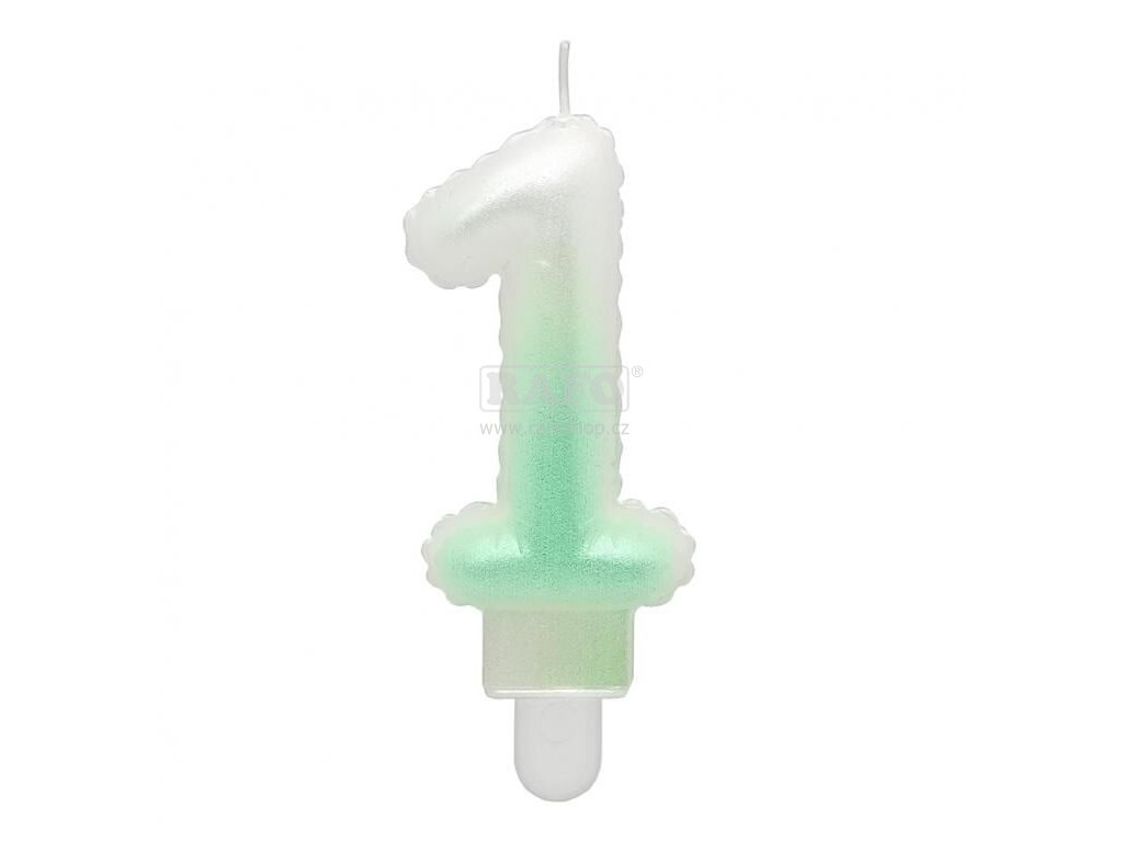 Dortová svíčka balónková číslo 1, bílo-zelená