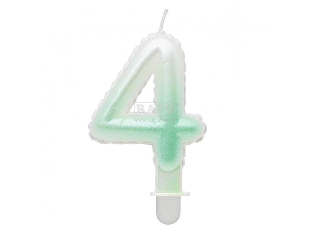 Dortová svíčka balónková číslo 4, bílo-zelená