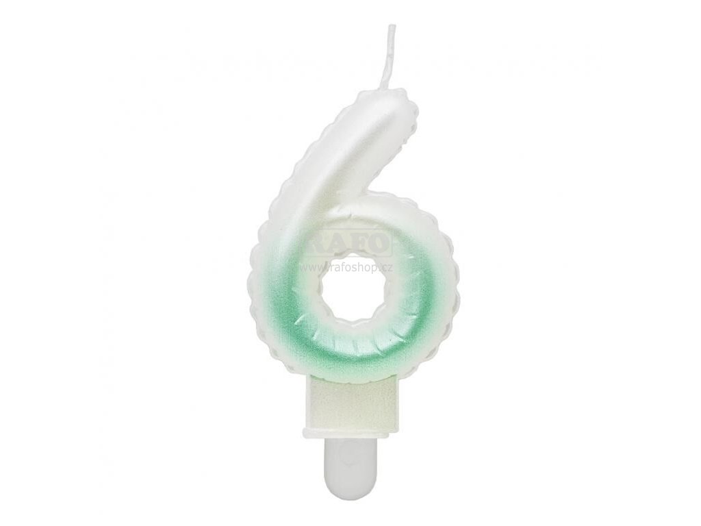 Dortová svíčka balónková číslo 6, bílo-zelená