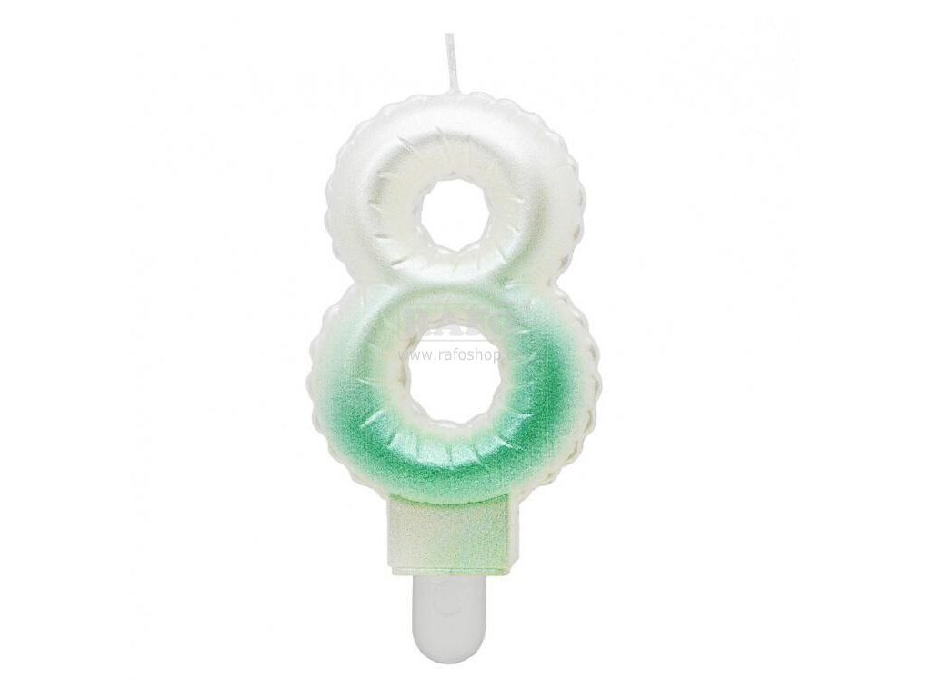 Dortová svíčka balónková číslo 8, bílo-zelená