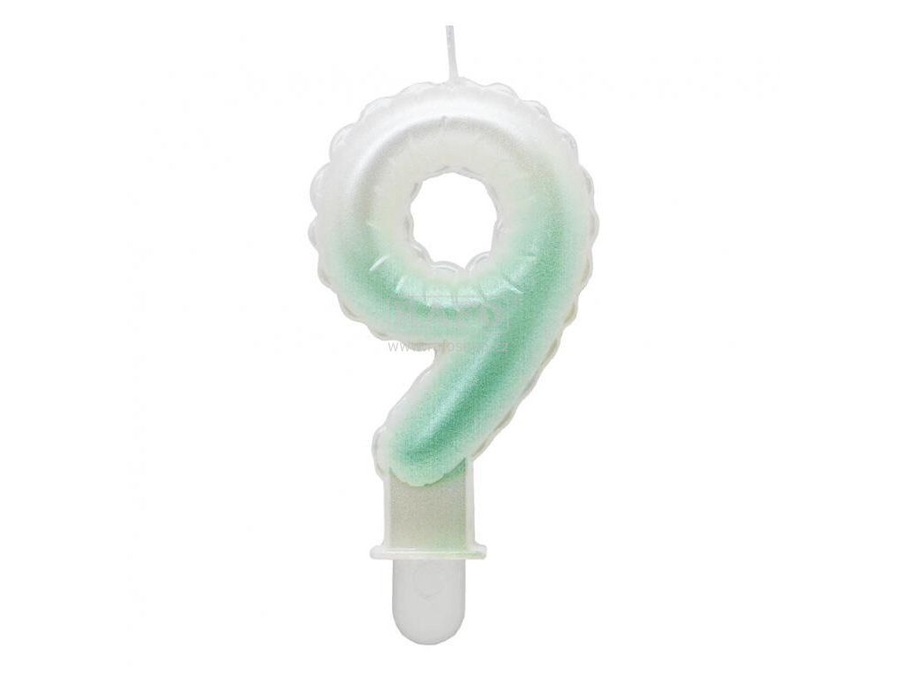 Dortová svíčka balónková číslo 9, bílo-zelená
