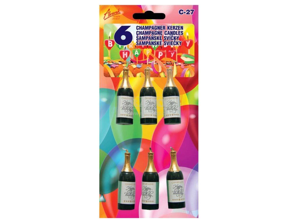 Narozeninové svíčky - Champagne, výška 50 mm, 6 narozeninových svíček ve tvaru šampaňskéhoDoplňkové parametry