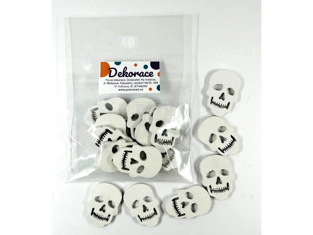 Dřevěné dekorace motiv: lebka barva: bílá rozměr cca: 3 x 2 cm Cena za jedno balení obsahující 10 kusů.Doplňkové parametry