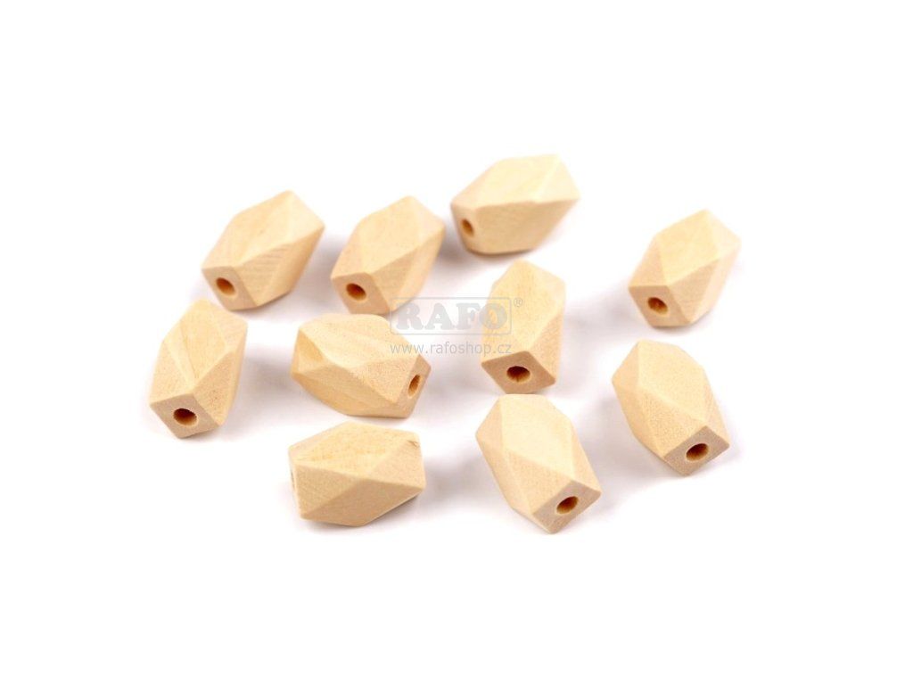 Dřevěné přírodní korálky mají tvar diamantu. Nadchnou vás svým geometrickým designem. Nejsou lakované. Můžete je navlékat na silon nebo jiný návlekový materiál. Korálky můžete použít na výrobu náramků, náhrdelníků nebo i na tvorbu přívěsků ke klíčům, kabelce apod. Rozměry: 10 x 16 mm. Průvlek: 2,8 mm. Nelakované dřevoDoplňkové parametry