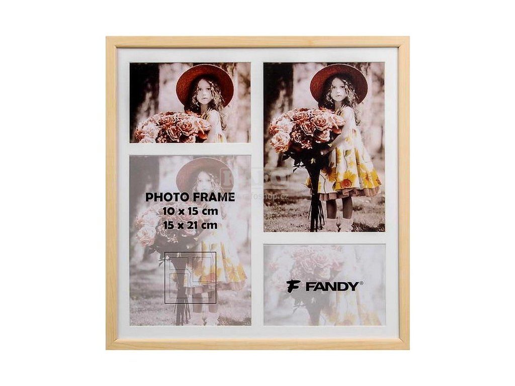 Dřevěný rámeček na 2 foto 10 x 15 cm a 2 foto 15 x 21 cm, celkový rozměr rámečku 37,5 x 38,5 cm, k zavěšení vertikálně i horizontálně, šířka lišty 1,5 cm. Tip na dárek.Doplňkové parametry
