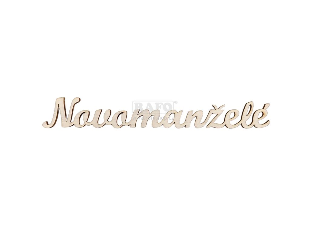 Dřevěný výřez z překližky, nápis NOVOMANŽELÉ, 18,5 x 2,6cm, 1ks. Výřezy můžete použít jako samostatnou dekoraci nebo dozdobit a domalovat. K dotvoření výřezu můžete použít různé materiály a barvy - ubrousky, papíry, textil, akrylové či vodové barvy, pastelky atd.Doplňkové parametry
