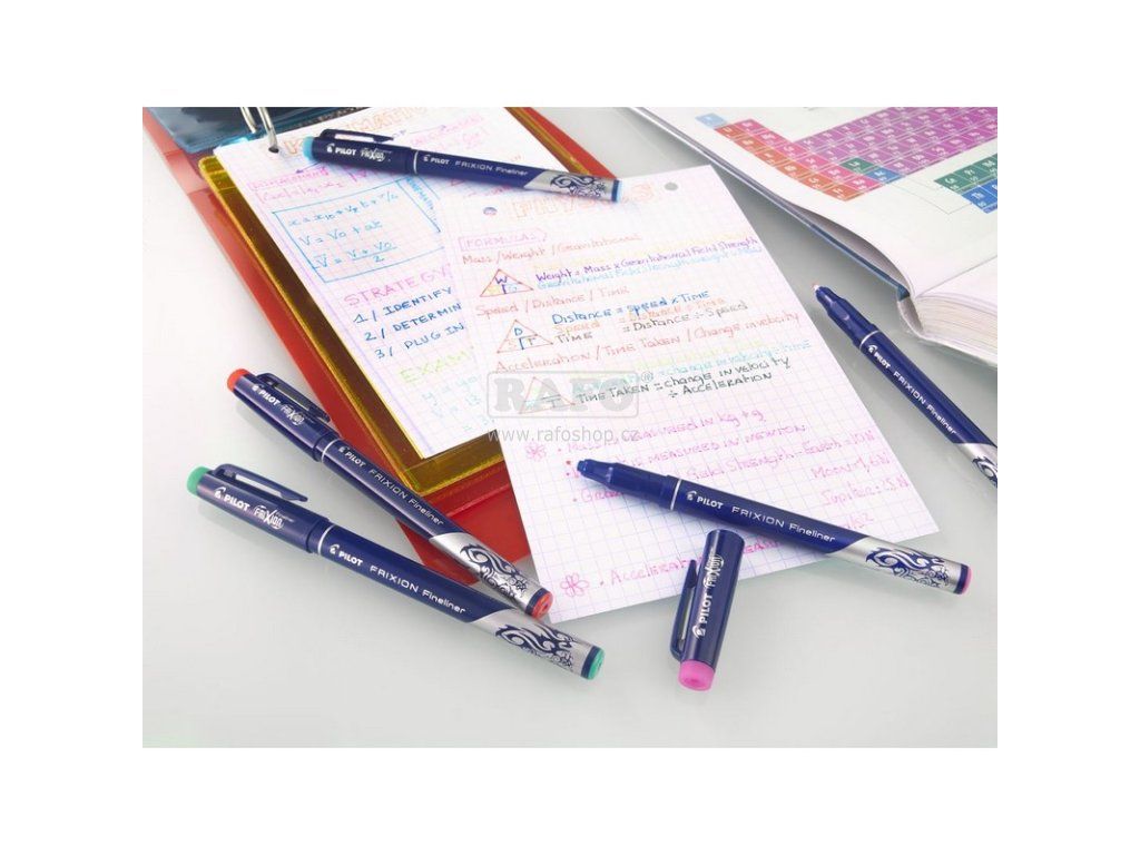 První gumovací liner ve 12 barvách. Pro psaní, kreslení, vybarvování, psaní do šablon. Ideální do školy, kanceláře i na doma. Termosenzitivní inkoust stejně jako u ostatních produktů z rodiny Frixion. Odolný polyacetalový hrot. Guma integrovaná v zakončení víčka. S pohodlnou úchopovou zónou. K dispozici ve 12 barvách. Průměr hrotu: 1,3 mm. Šířka stopy: 0,45 mm. Jednorázový, nelze dokupovat náplň.Doplňkové parametry