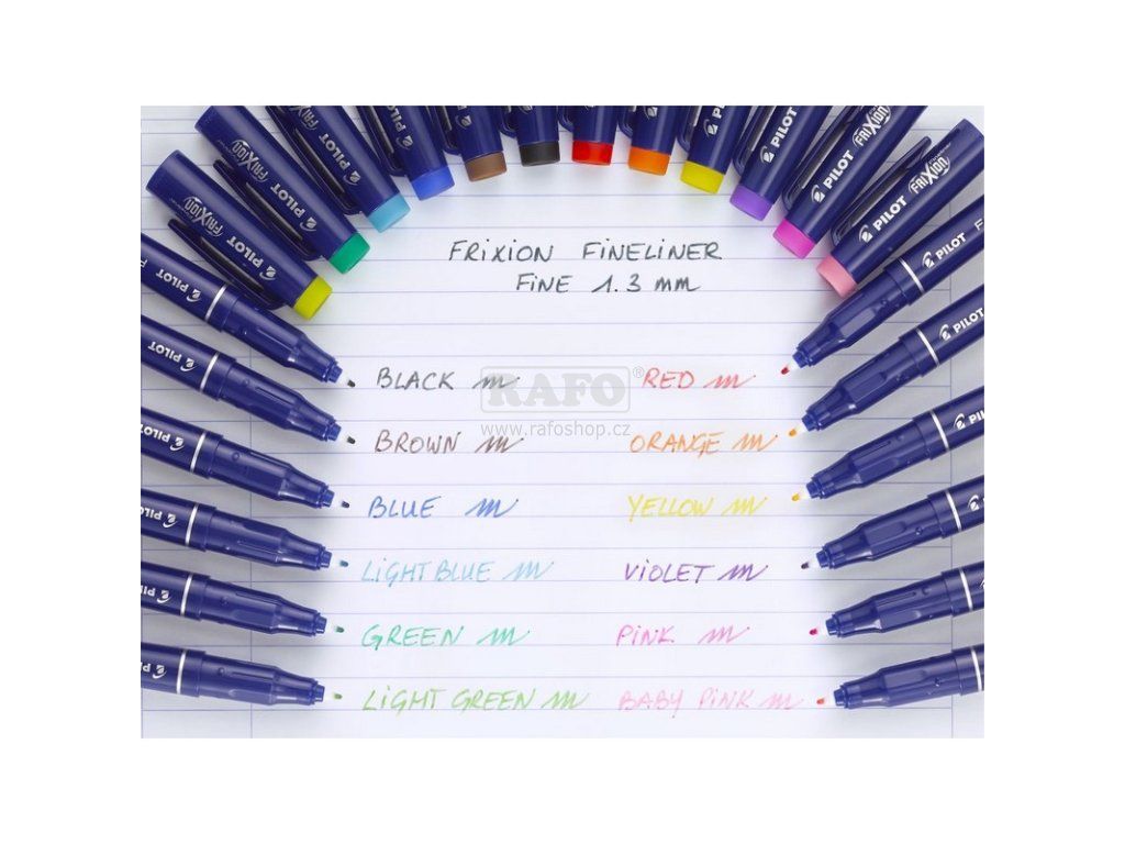 První gumovací liner ve 12 barvách. Pro psaní, kreslení, vybarvování, psaní do šablon. Ideální do školy, kanceláře i na doma. Termosenzitivní inkoust stejně jako u ostatních produktů z rodiny Frixion. Odolný polyacetalový hrot. Guma integrovaná v zakončení víčka. S pohodlnou úchopovou zónou. K dispozici ve 12 barvách. Průměr hrotu: 1,3 mm. Šířka stopy: 0,45 mm. Jednorázový, nelze dokupovat náplň.Doplňkové parametry